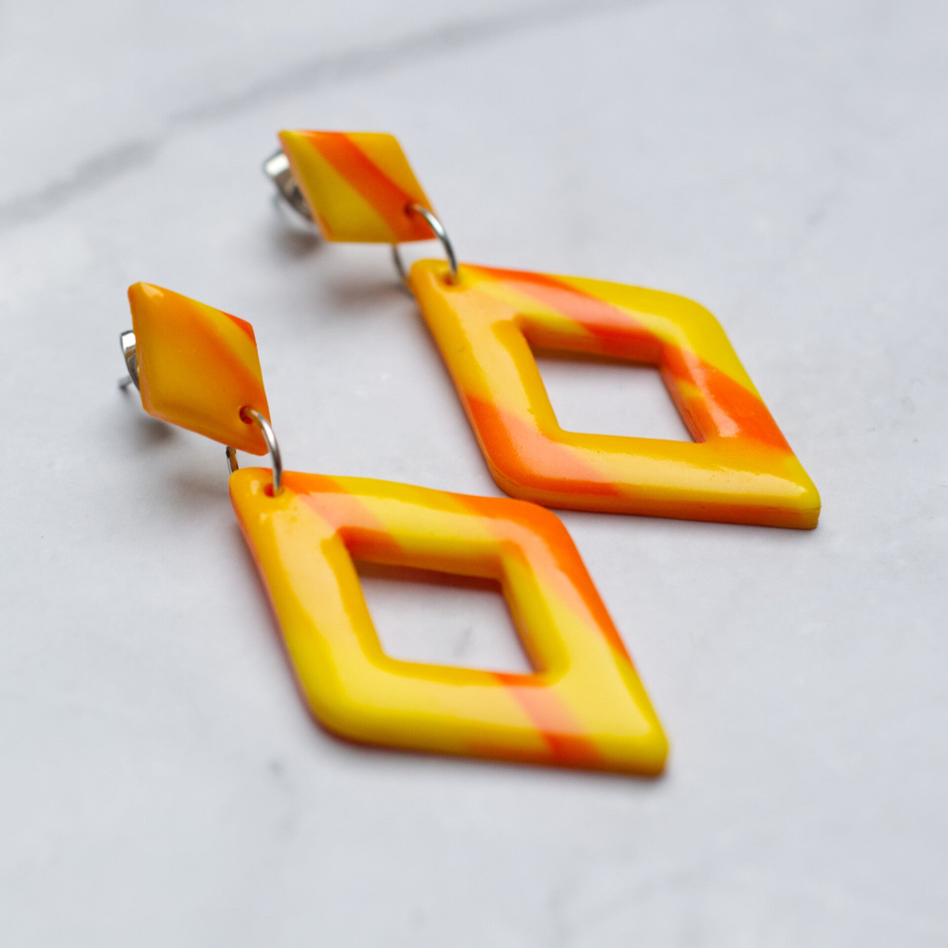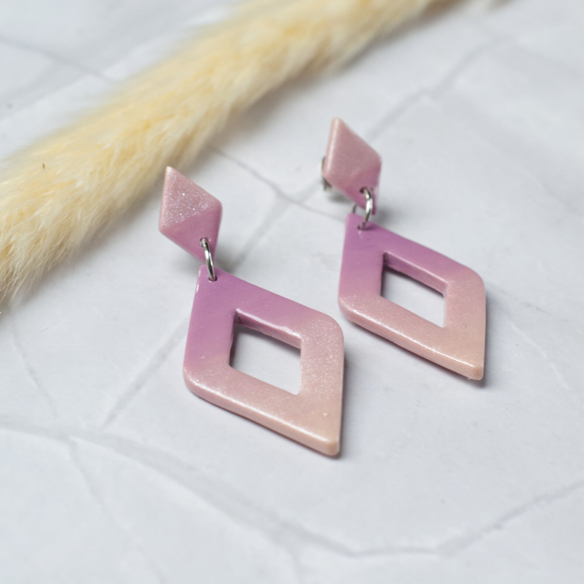 Polymeer ruit oorbel op stainless steel zilver knopje