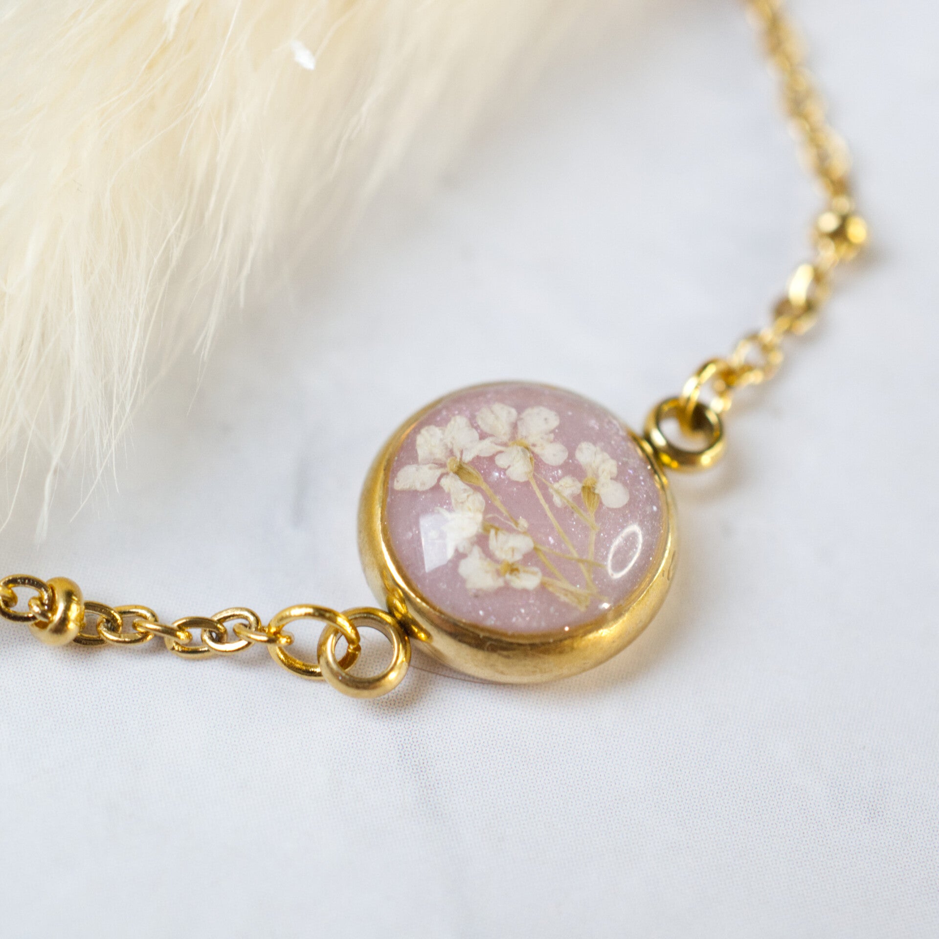 Rvs gouden ketting met droogbloem in epoxy (8mm)