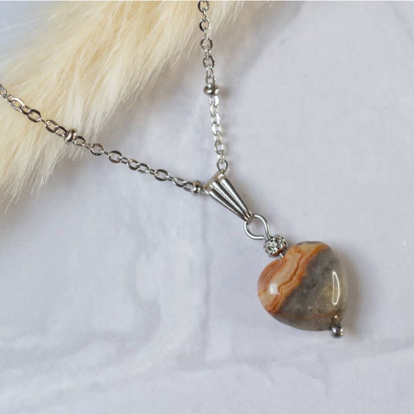 Rvs zilver ketting met edelsteen hartje