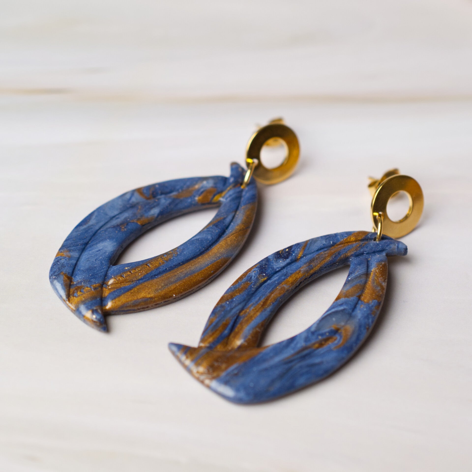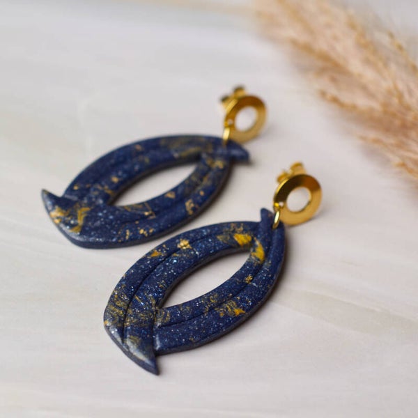 Polymeer statement oorbellen met rvs knop.